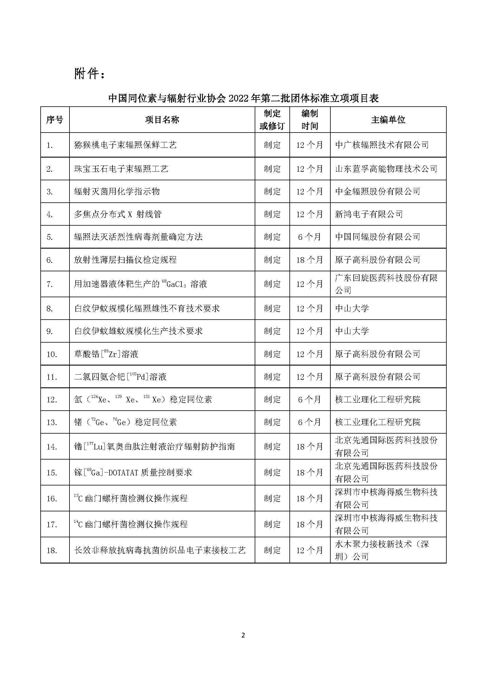中国同位素与辐射行业协会关于2022年第二批团体标准立项的公示