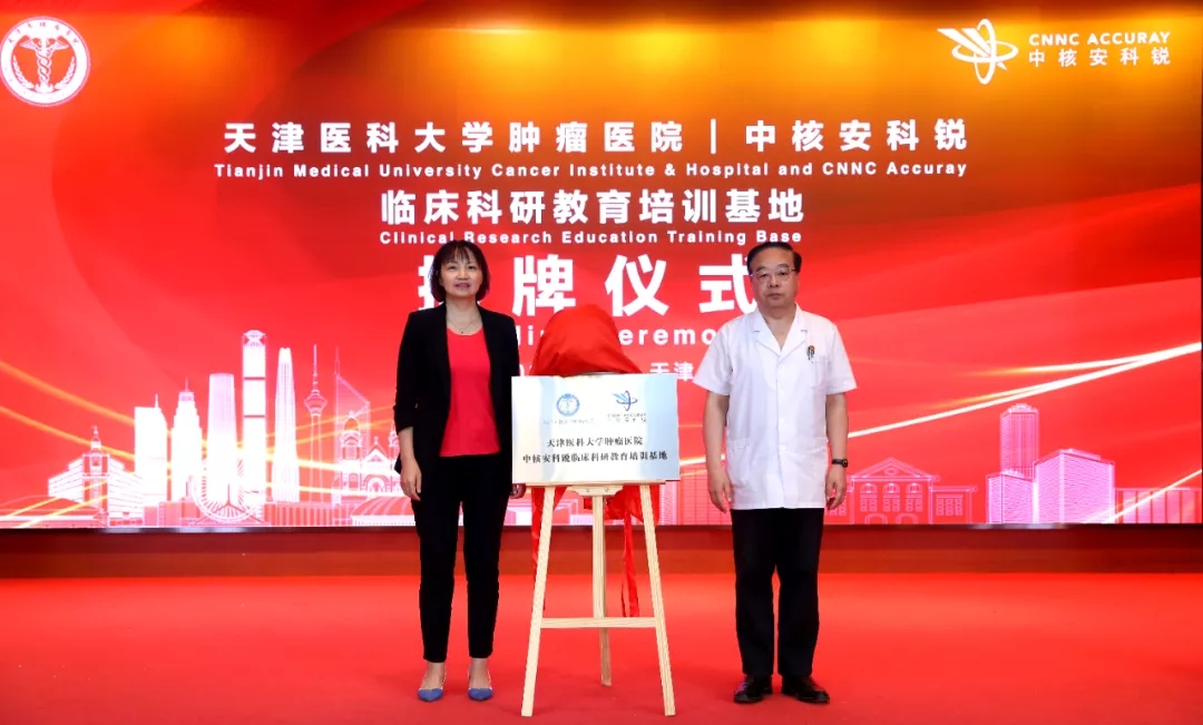由天津医科大学肿瘤医院和中核安科锐合作创建的临床科研教育培训基地,也在当天的发布会上举行了隆重的揭牌仪式。中核安科锐CEO曹永胜先生表示:“中核安科锐今后将携手合作伙伴,开设形式多样的教育(培训)中心,致力于放疗知识的宣传和普及,并不断为我国放疗事业培养、储备和输送业务能力硬、综合素质强的专业人才。