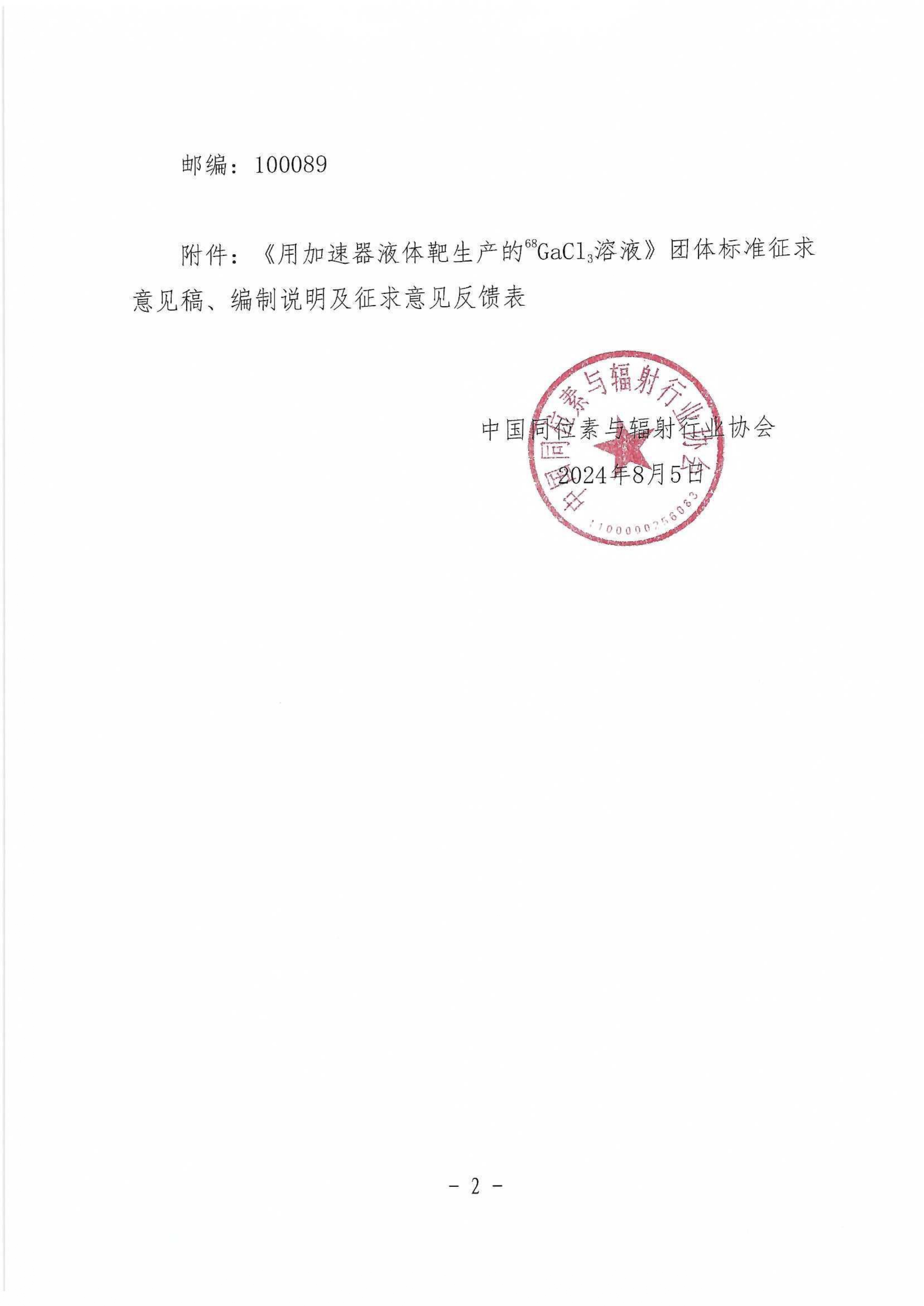附件下载:附件:《用加速器液体靶生产的68GaCl3溶液》团体标准征求意见稿、编制说明及征求意见反馈表.zip