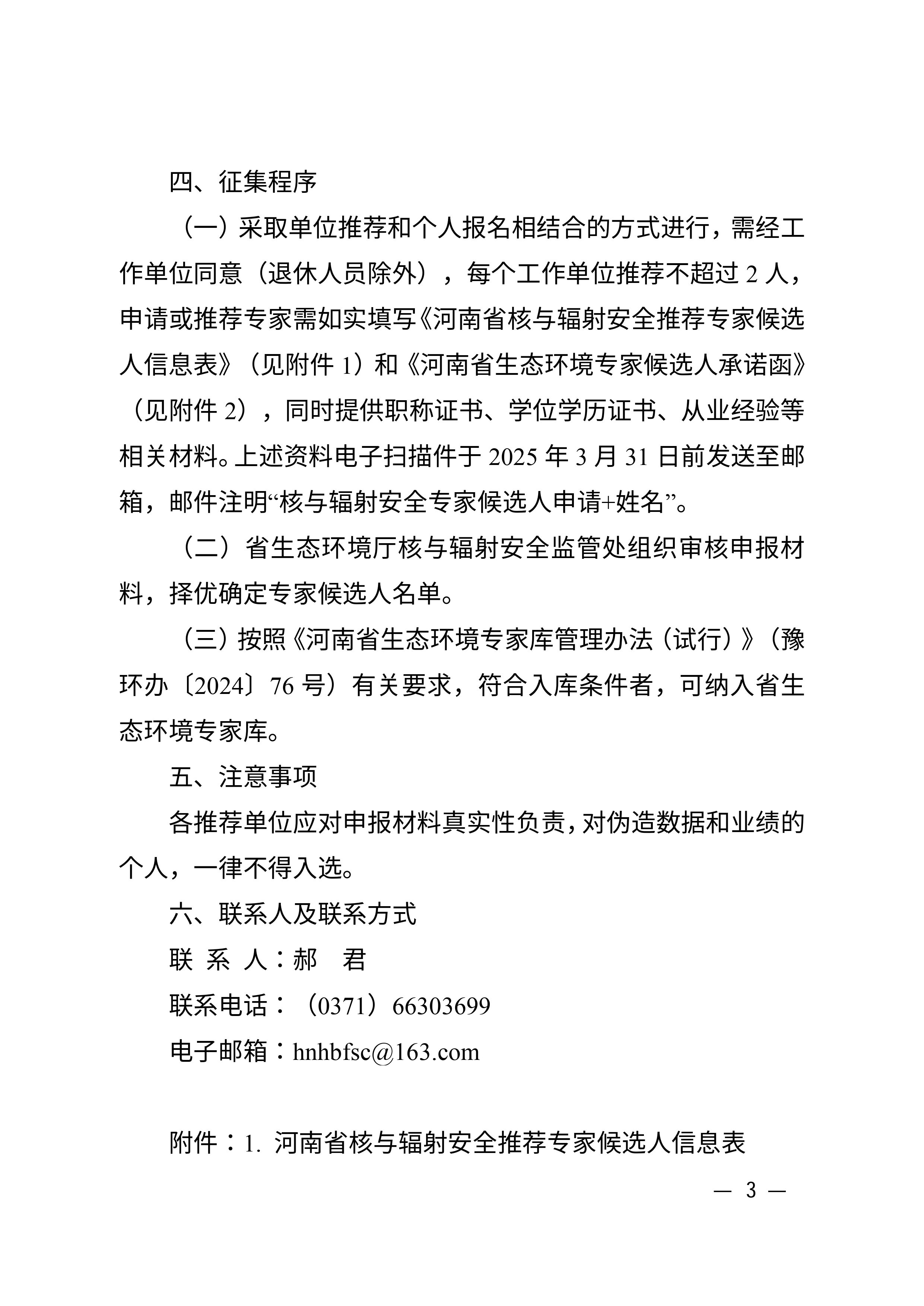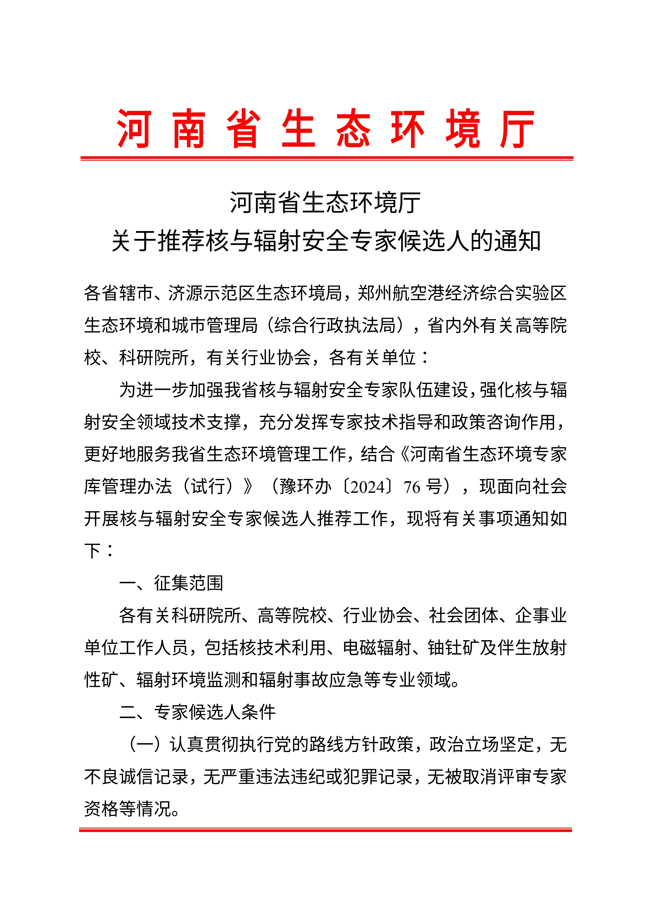 附件下载:附件1、2:河南省核与辐射安全推荐专家候选人信息表、河南省生态环境专家候选人承诺函.rar