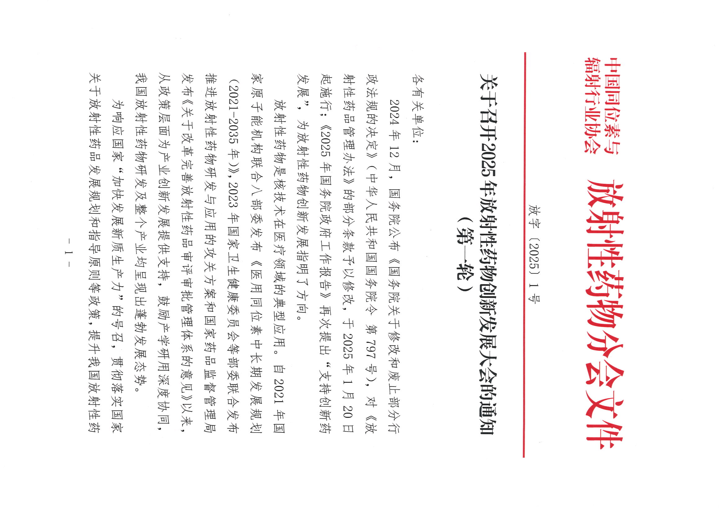 电子版通知扫描件下载:关于召开2025年放射性药物创新发展大会的通知(第一轮).PDF