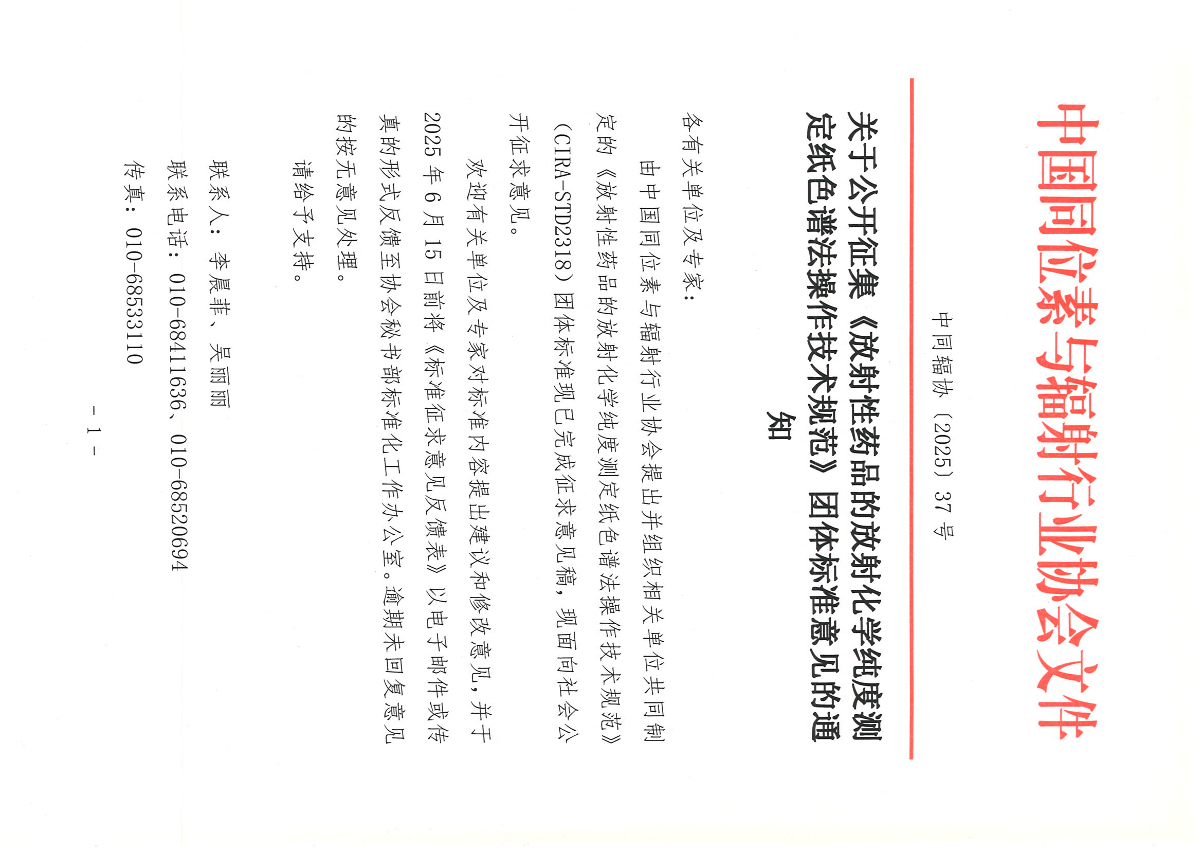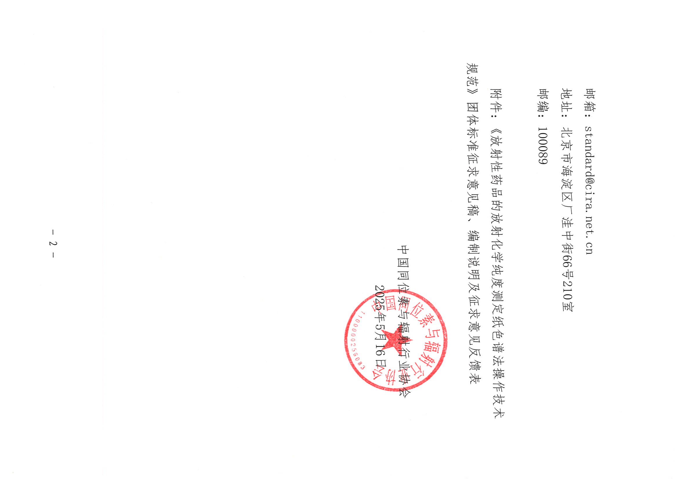 附件下载:附件:《放射性药品的放射化学纯度测定纸色谱法操作技术规范》团体标准征求意见稿、编制说明及征求意见反馈表.zip