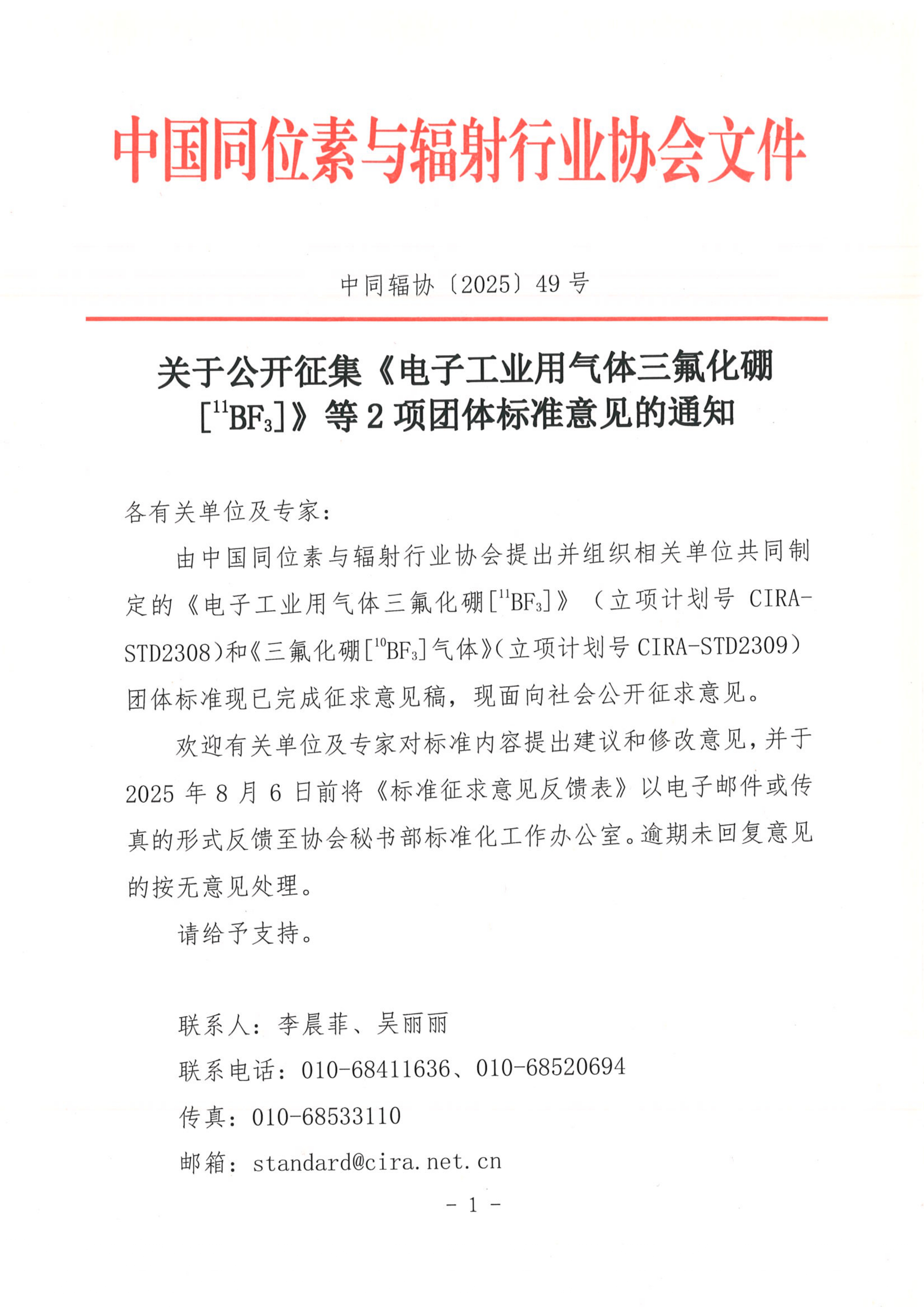 附件下载:附件1 《电子工业用气体三氟化硼[11BF3]》团体标准征求意见稿、编制说明及征求意见反馈表.zip
