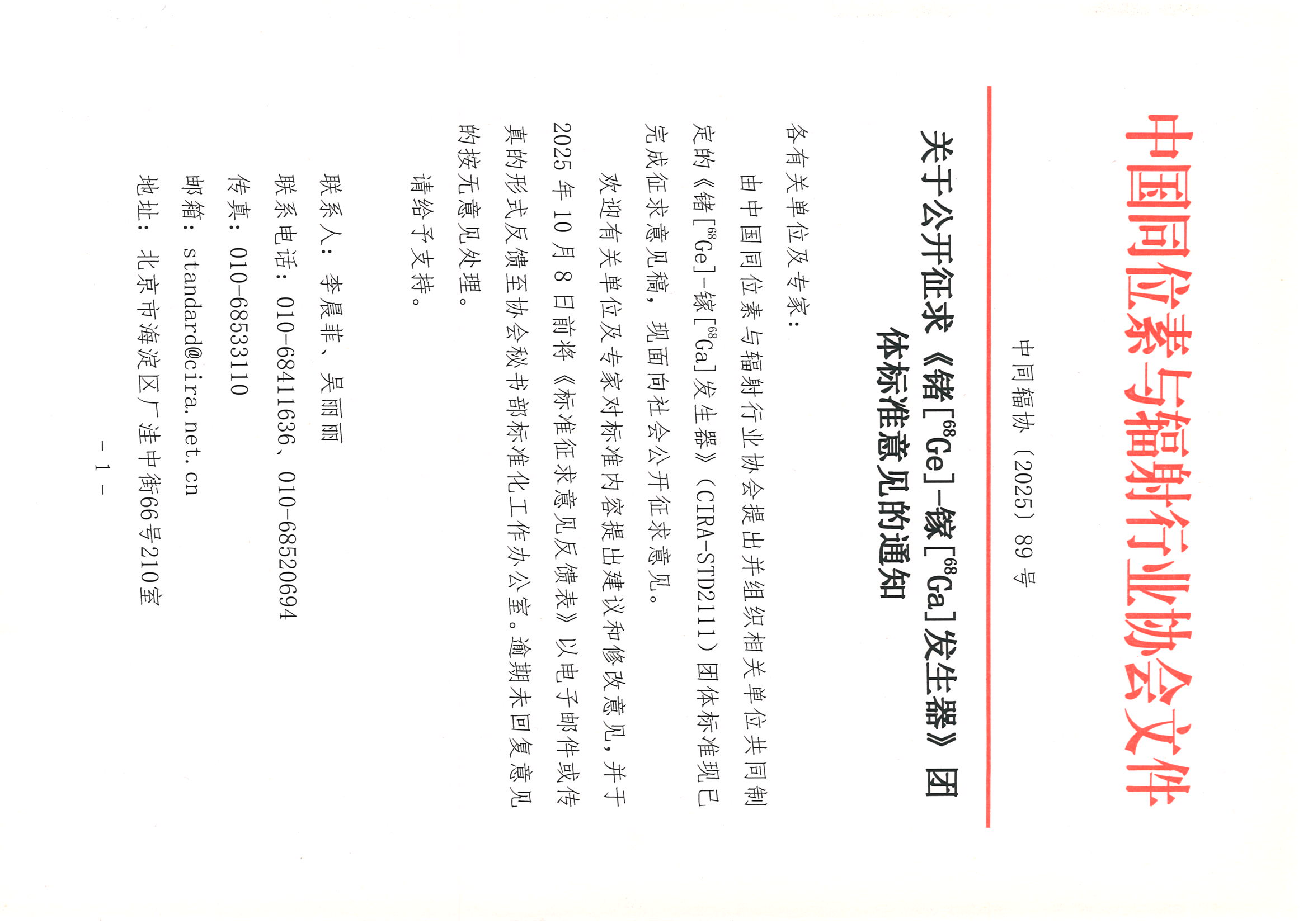 附件下载:《锗[68Ge]-镓[68Ga]发生器》团体标准征求意见稿、编制说明及征求意见反馈表.zip