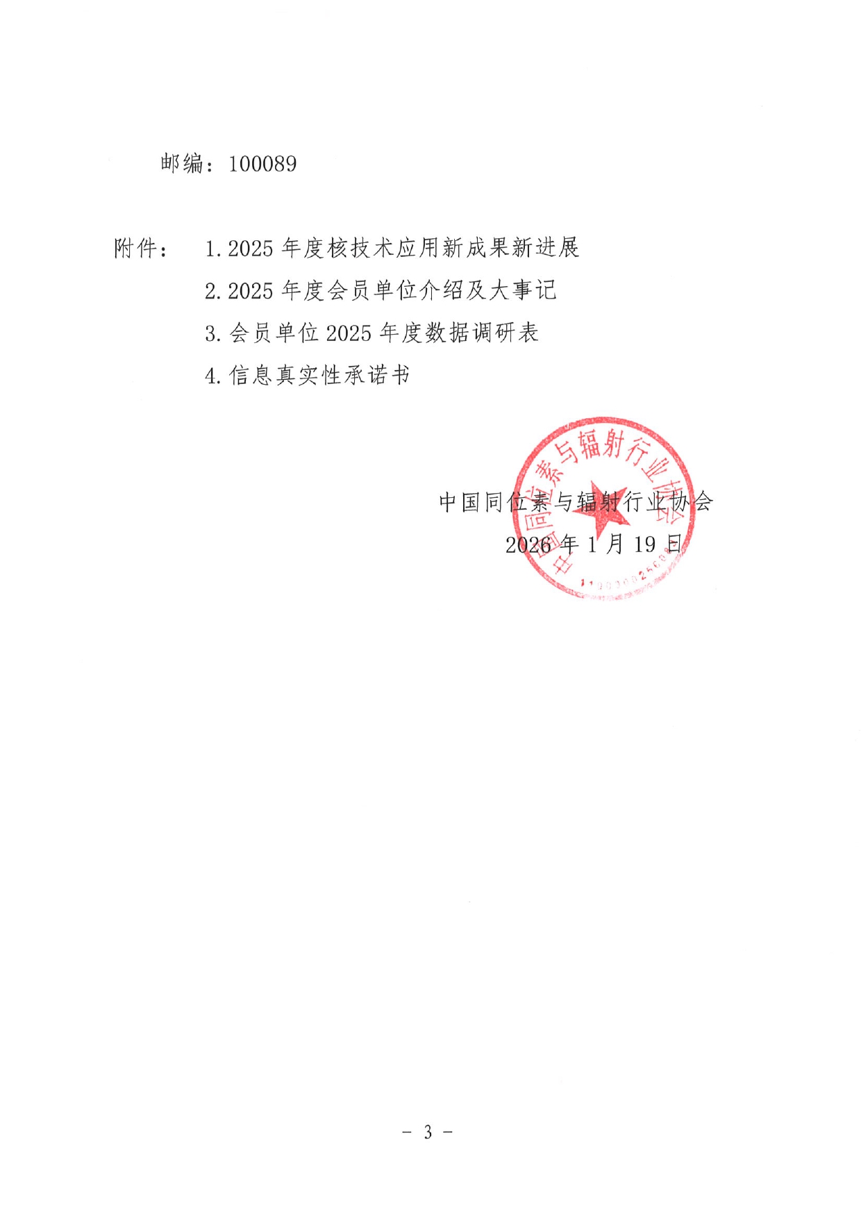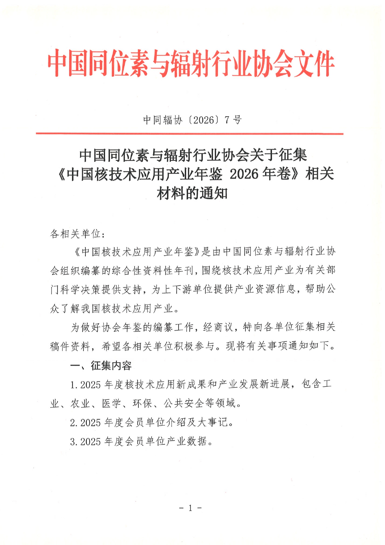 电子版通知及附件下载:附件:2025年度核技术应用新成果新进展、2025年度会员单位介绍及大事记、会员单位2025年度数据调研表、信息真实性承诺书.rar