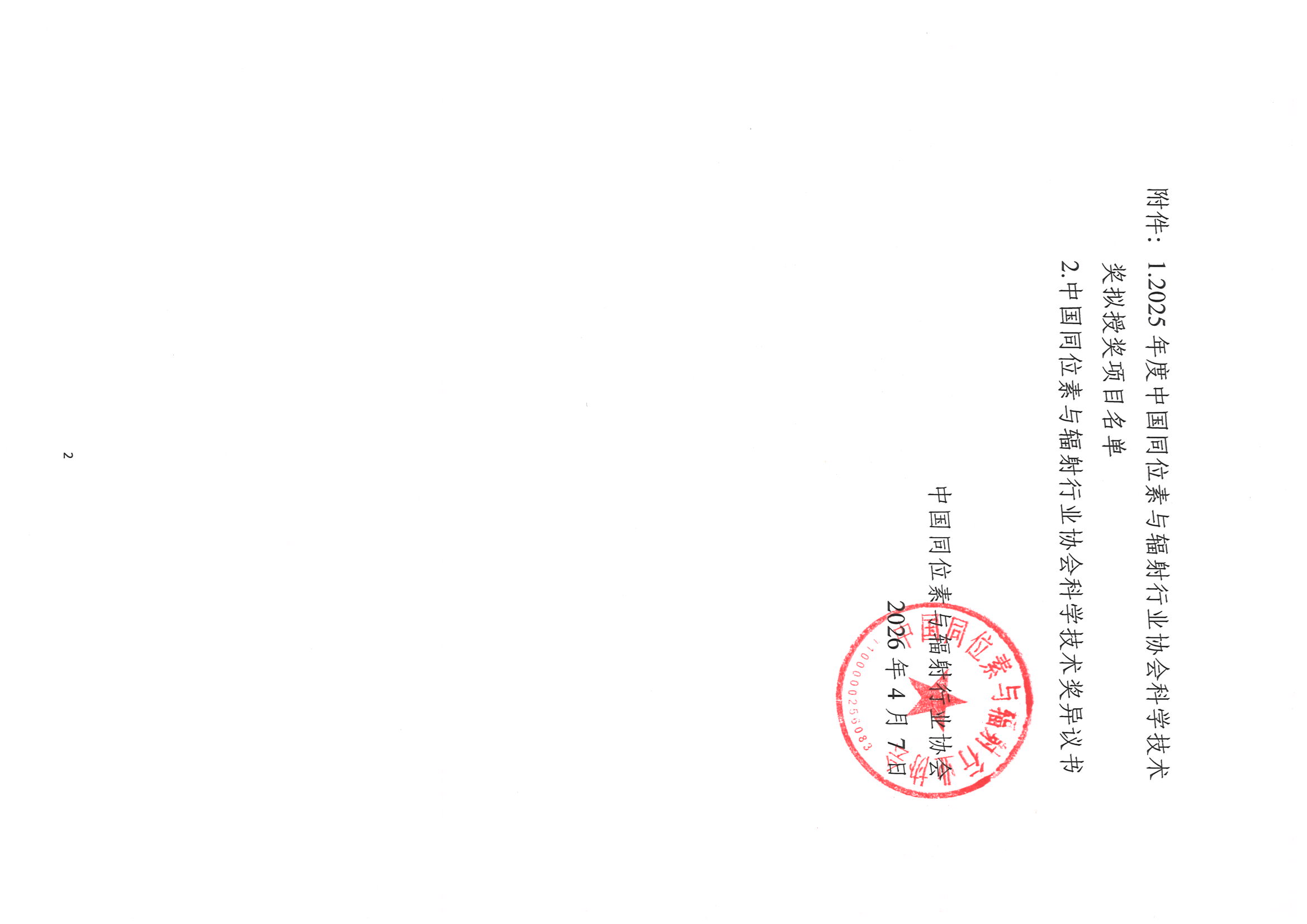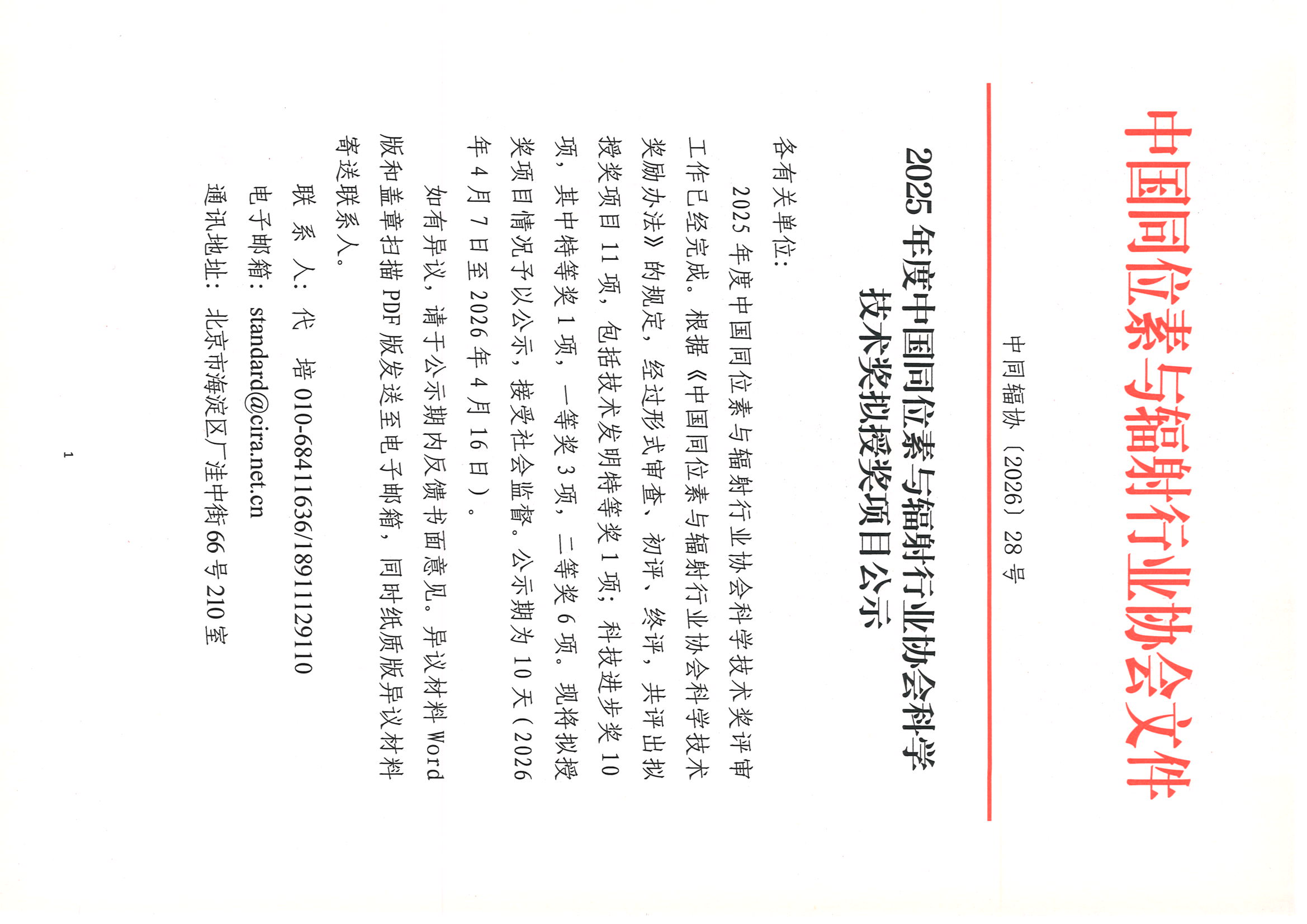 电子版通知及附件下载:中同辐协〔2026〕28号 2025年度中国同位素与辐射行业协会科学技术奖拟授奖项目公示.PDF