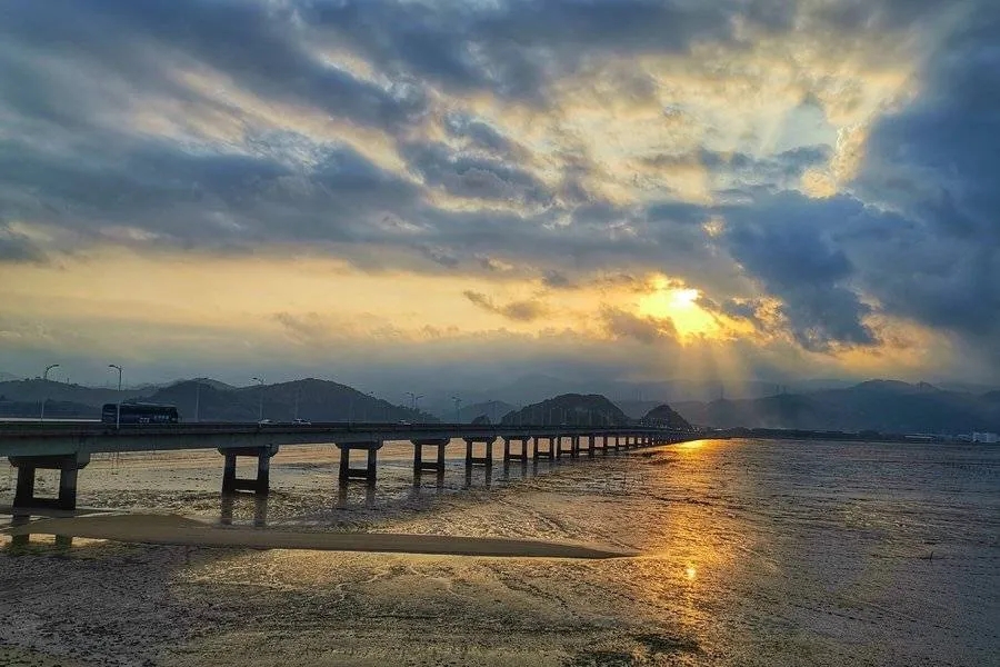 188****3022 夕阳下的宁德核电跨海大桥
