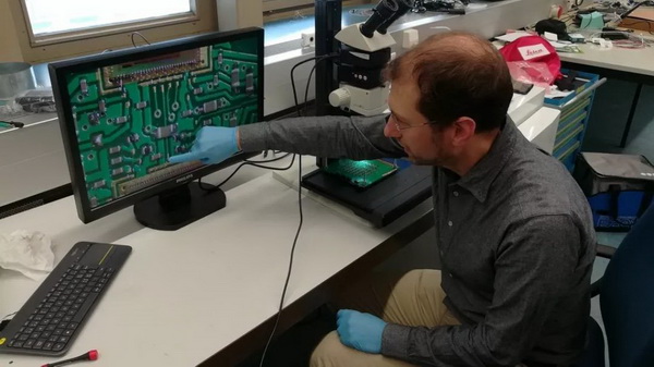 伯尔尼大学的研究人员在测试检测器中组装组件。 James Sinclair