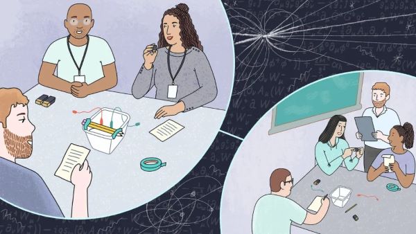 "让我们谈谈过程,谈谈粒子物理学家如何分析数据,让我们谈谈他们如何解决问题,"托普说。"能量和因果的想法也很自然地融入其中。我认为一个好的策略是找到一个你觉得有趣的粒子物理学的点,然后在这里或那里引出它。"