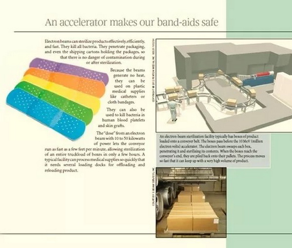 美国物理学会出版宣传册中专有一页说,“加速器使我们的创可贴安全”。