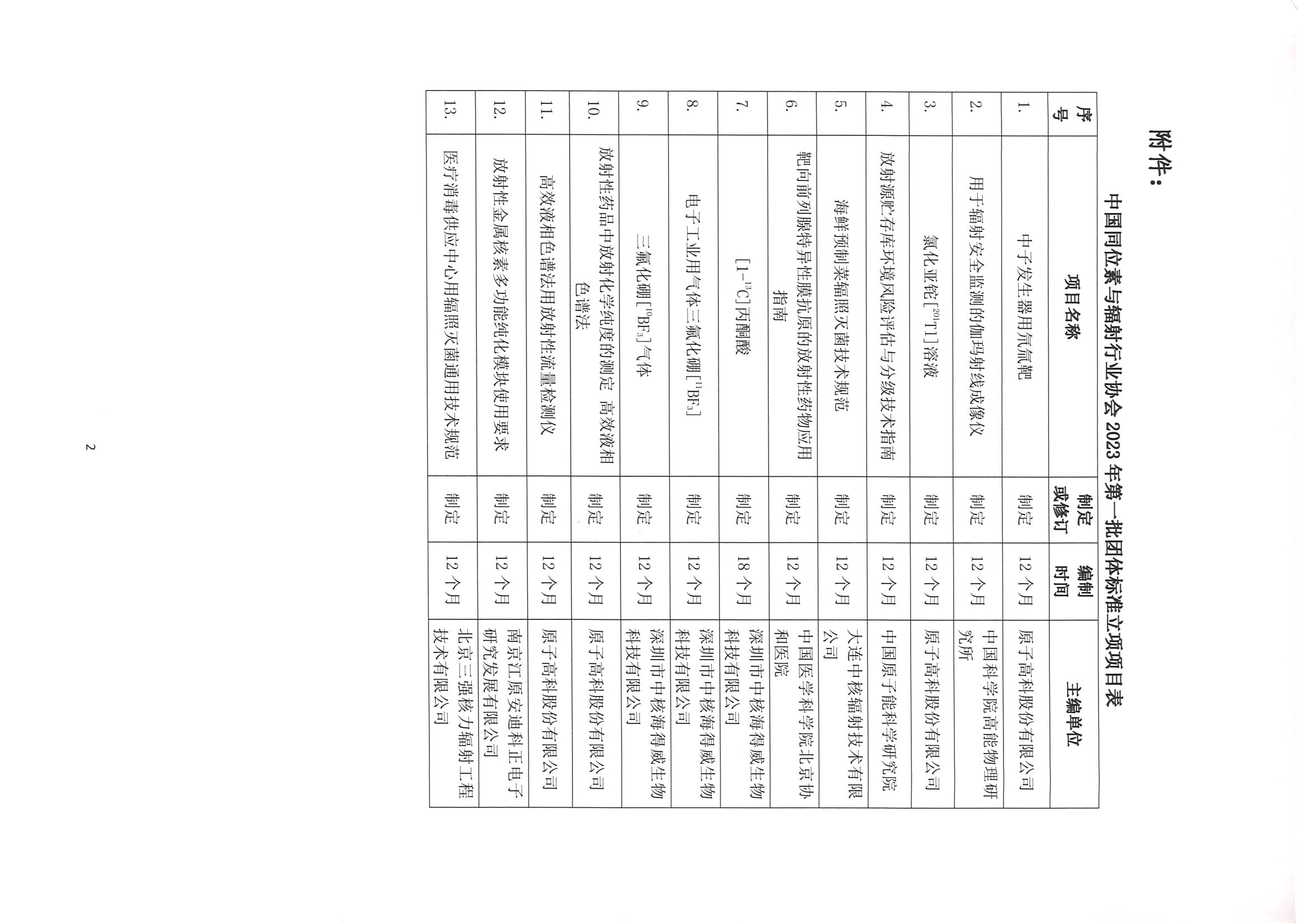 中国同位素与辐射行业协会关于2023年第二批团体标准立项的公示