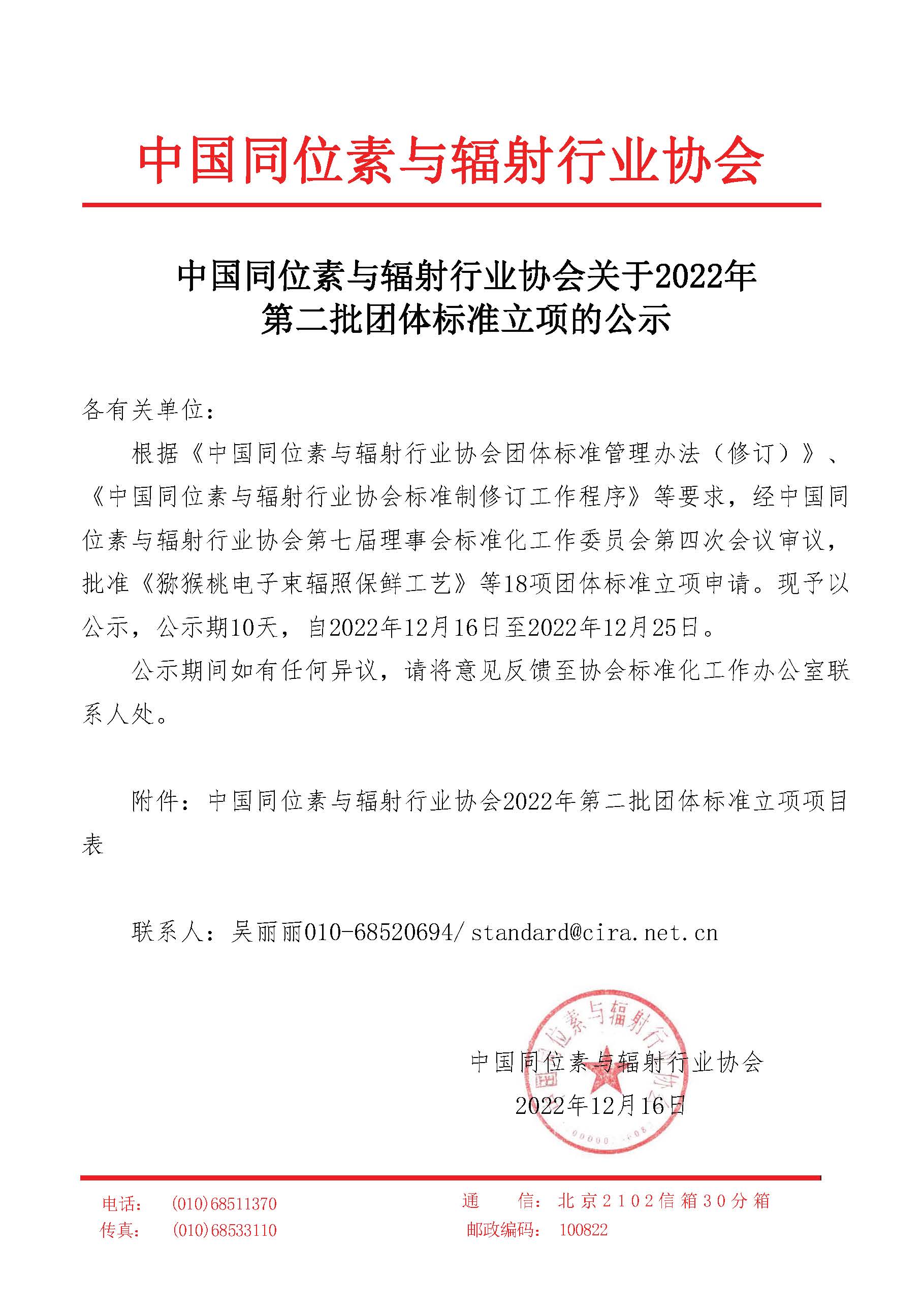 中国同位素与辐射行业协会关于2022年第二批团体标准立项的公示