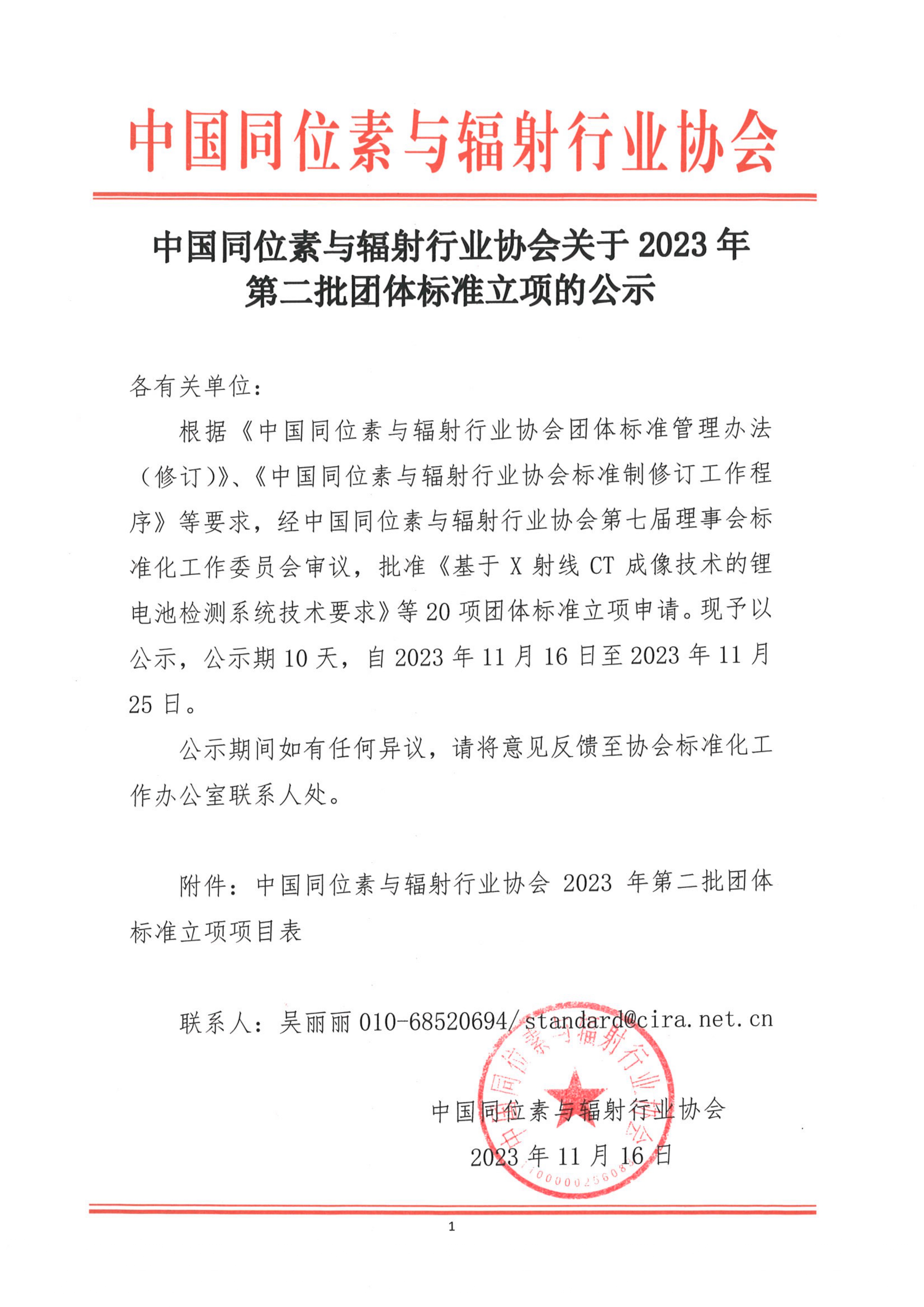 中国同位素与辐射行业协会关于2023年第一批团体标准立项的公示