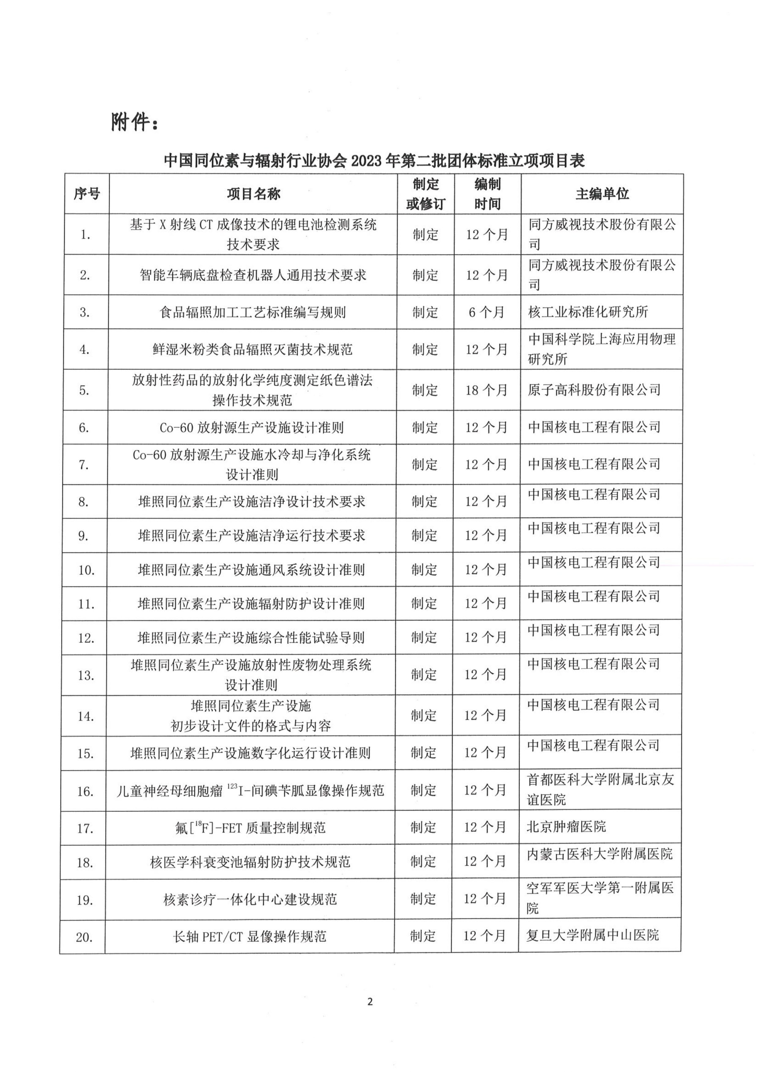 中国同位素与辐射行业协会关于2023年第二批团体标准立项的公示