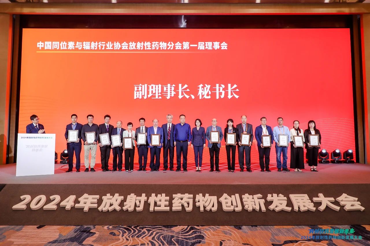 开幕式上,中国同位素与辐射行业协会放射性药物分会第一届理事会理事长孔繁圃和副理事长们集体亮相。协会放射性药物分会将引导产业形成公平公正、良性竞争、合作共赢的行业发展环境,推动放射性药物的研发、生产、经营、使用等各个环节的规范化、标准化、专业化。