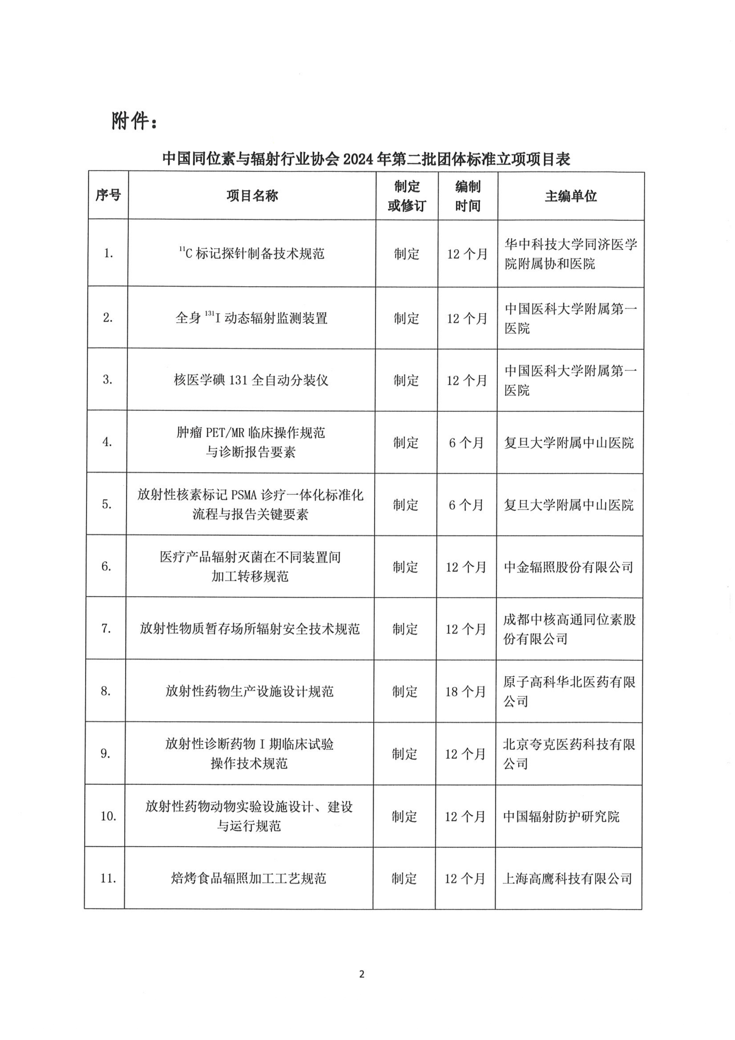 中国同位素与辐射行业协会关于2024年第二批团体标准立项的公示
