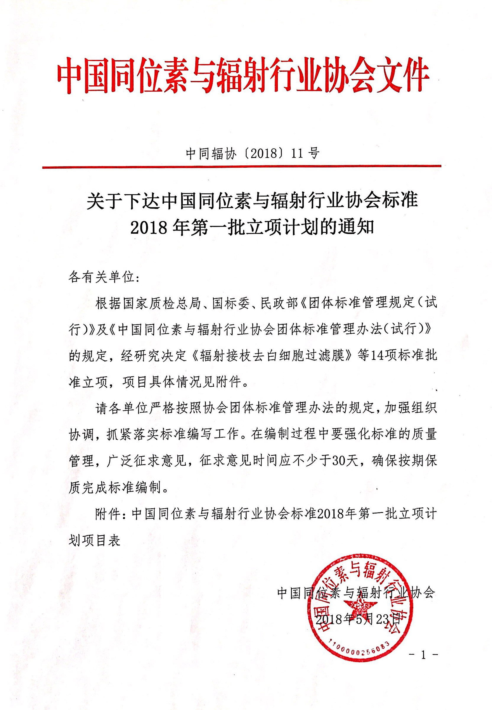 中国同位素与辐射行业协会标准2018年第一批立项计划见通知,如各有关单位有其它团体标准立项提案,请您按照附件格式填写后发送电子版至协会邮箱,以做为下一批立项计划提案。