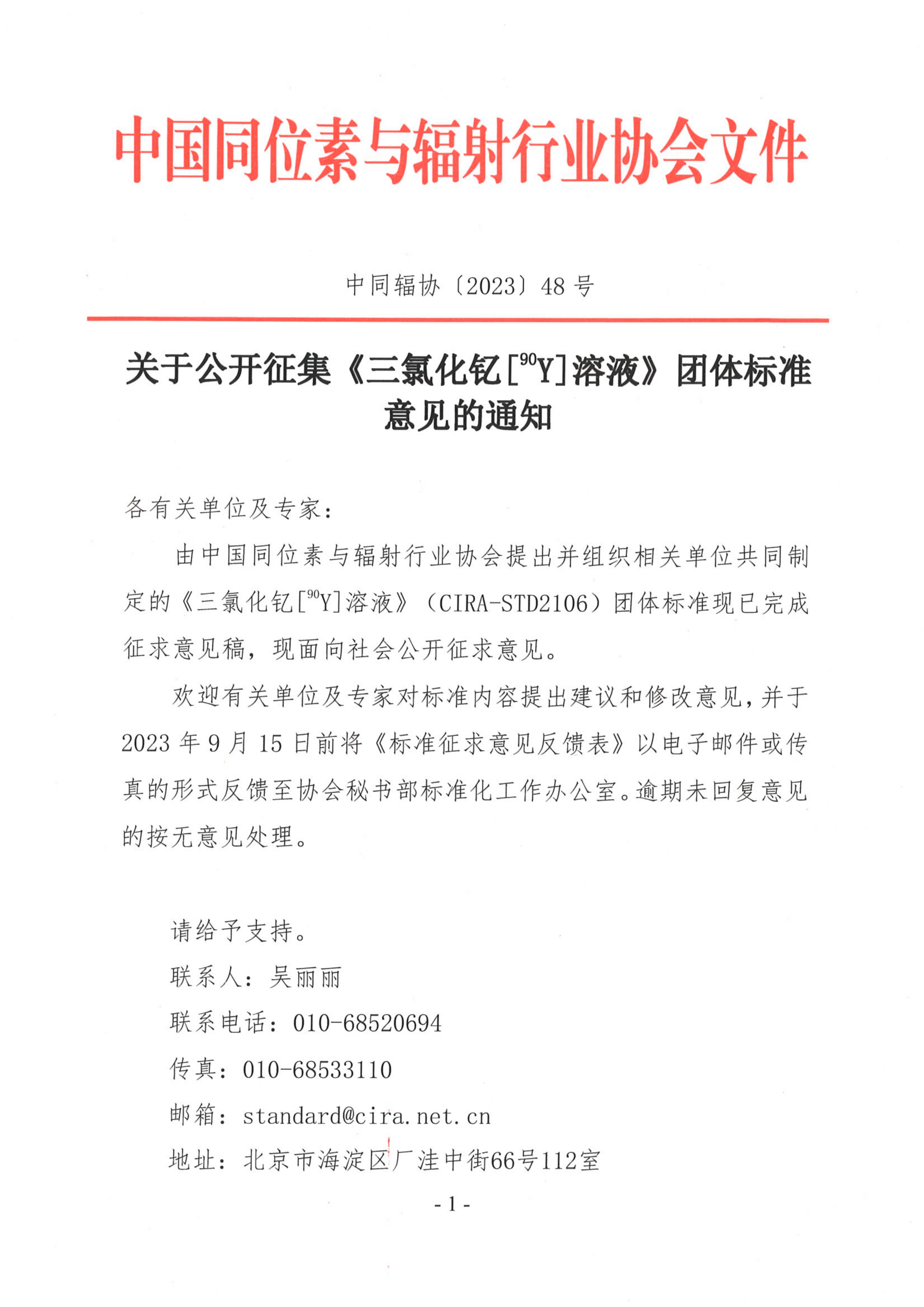 附件下载:附件:《三氯化钇[90Y]溶液》团体标准征求意见稿、编制说明及征求意见反馈表.zip