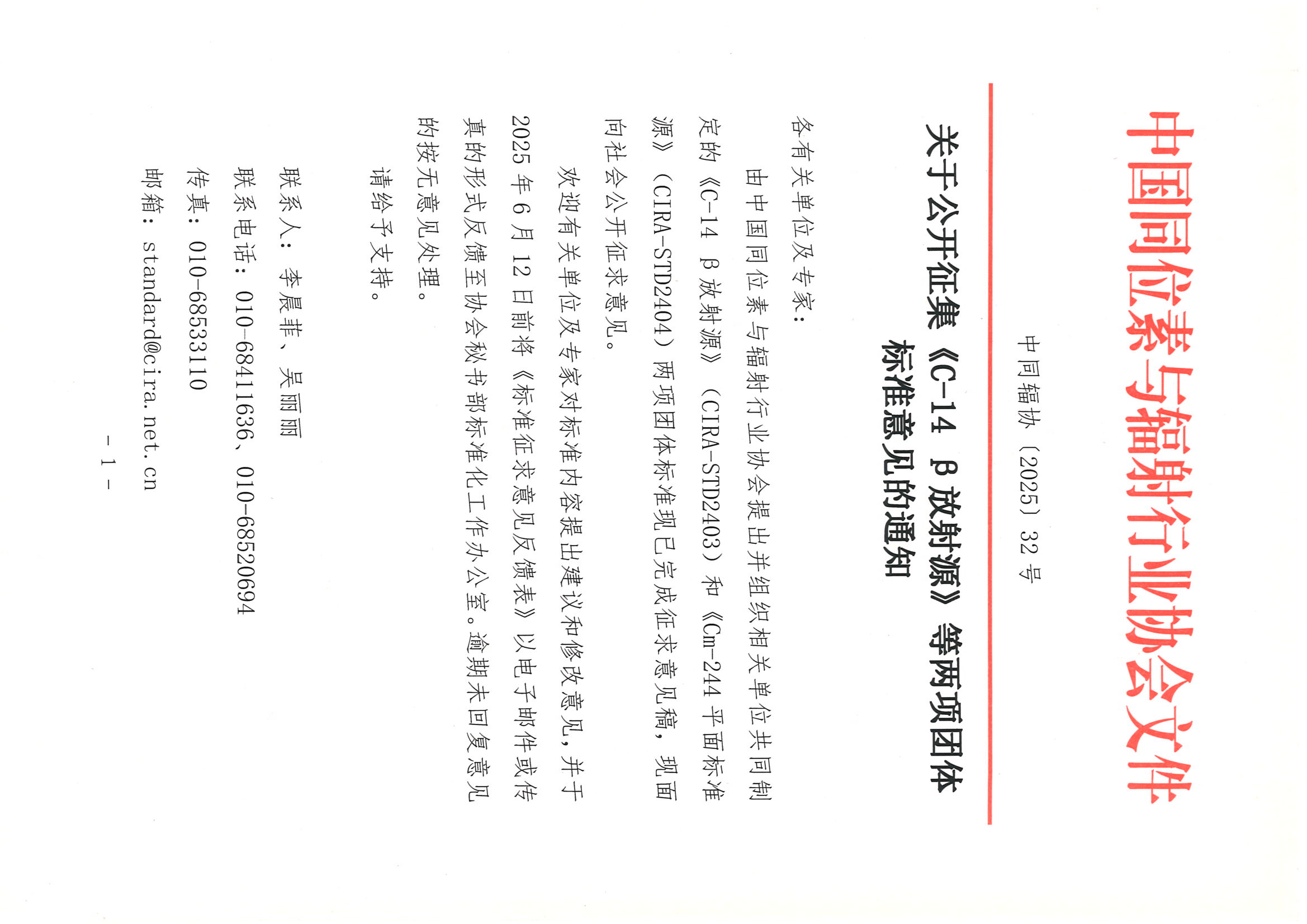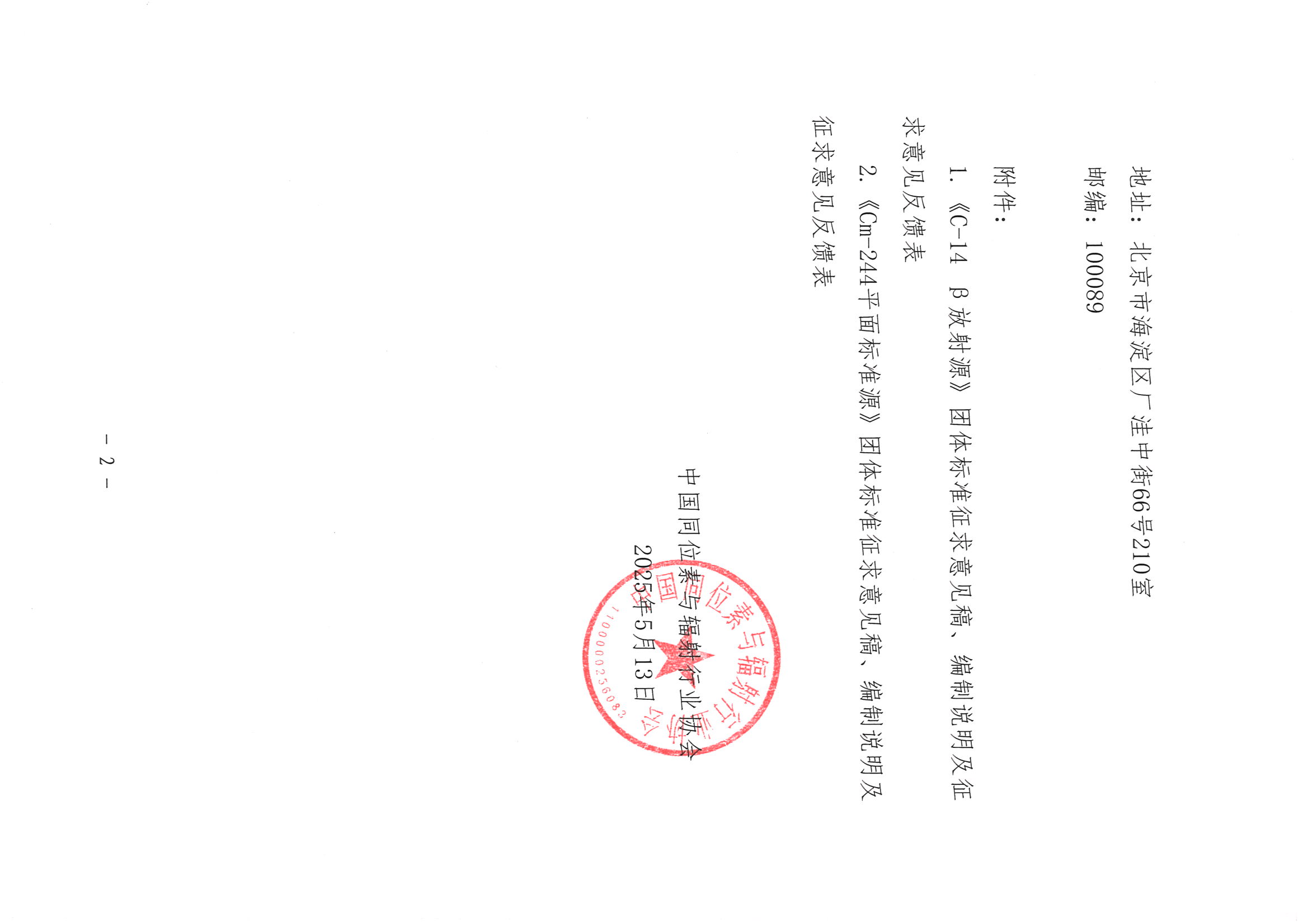 附件下载:附件1:《C-14 β放射源》团体标准征求意见稿、编制说明及征求意见反馈表.zip