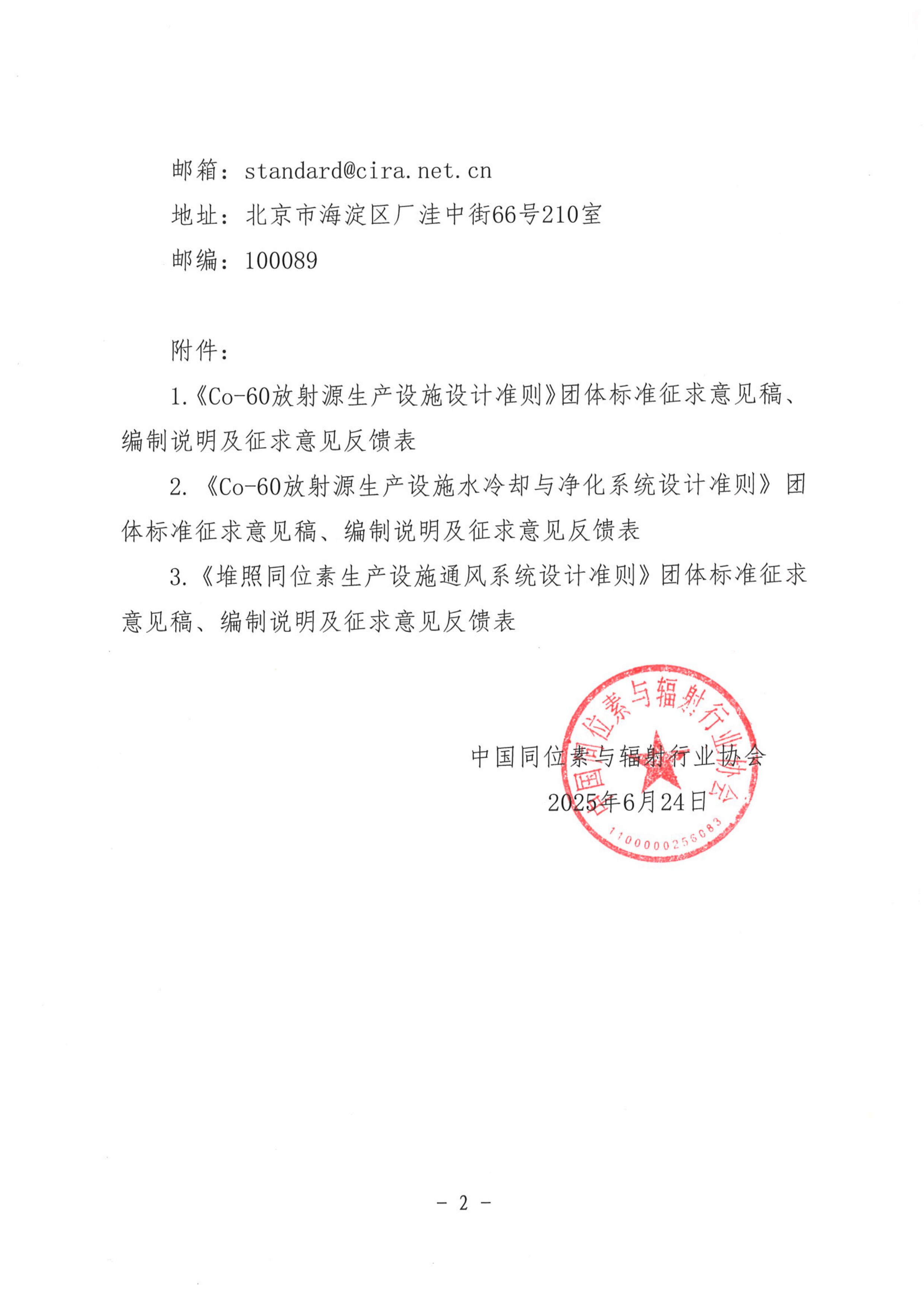 中同辐协〔2025〕48号 关于公开征集《Co-60放射源生产设施设计准则》等三项团体标准意见的通知.PDF