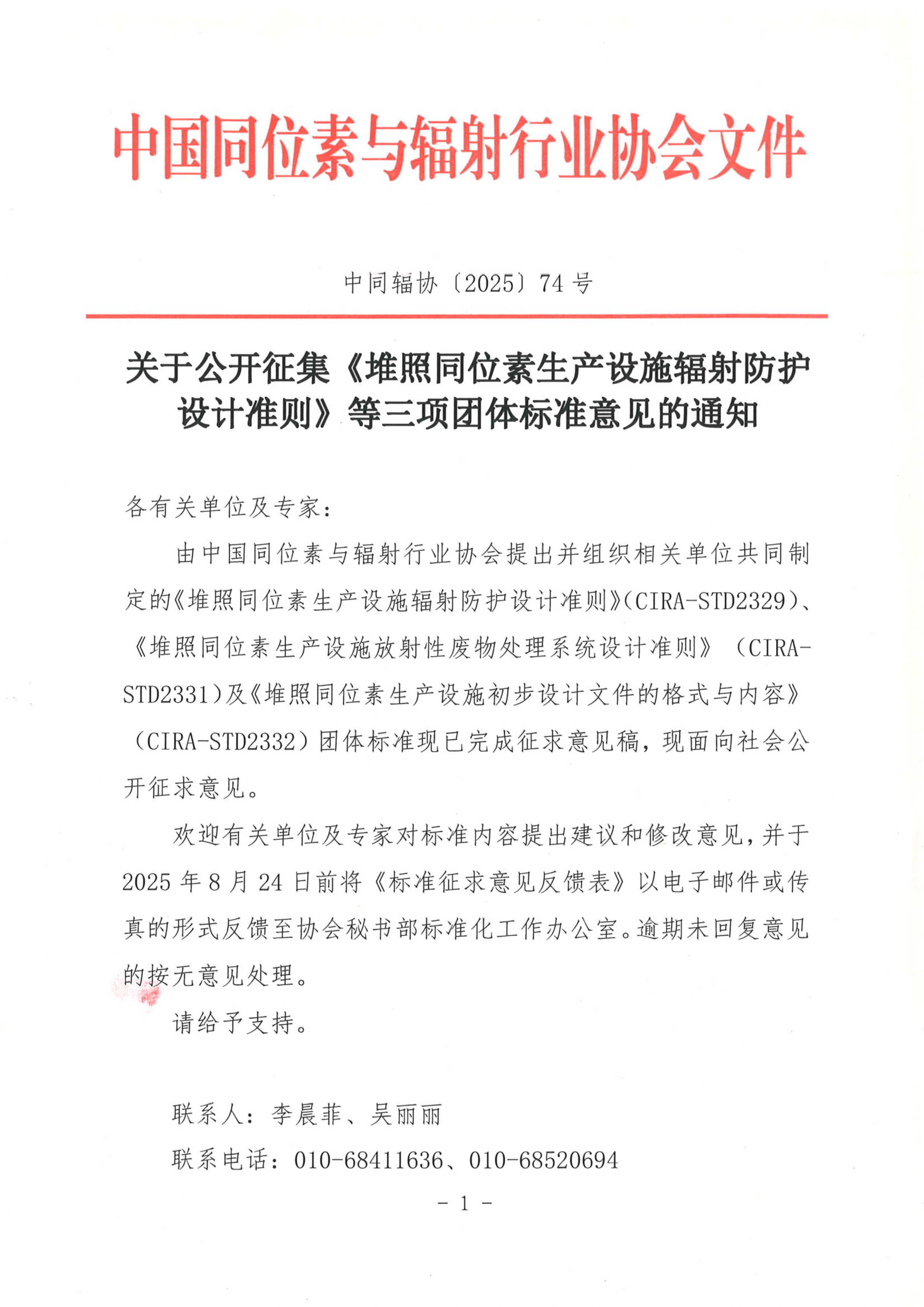 附件1:《堆照同位素生产设施辐射防护设计准则》团体标准征求意见稿、编制说明及征求意见反馈表.zip