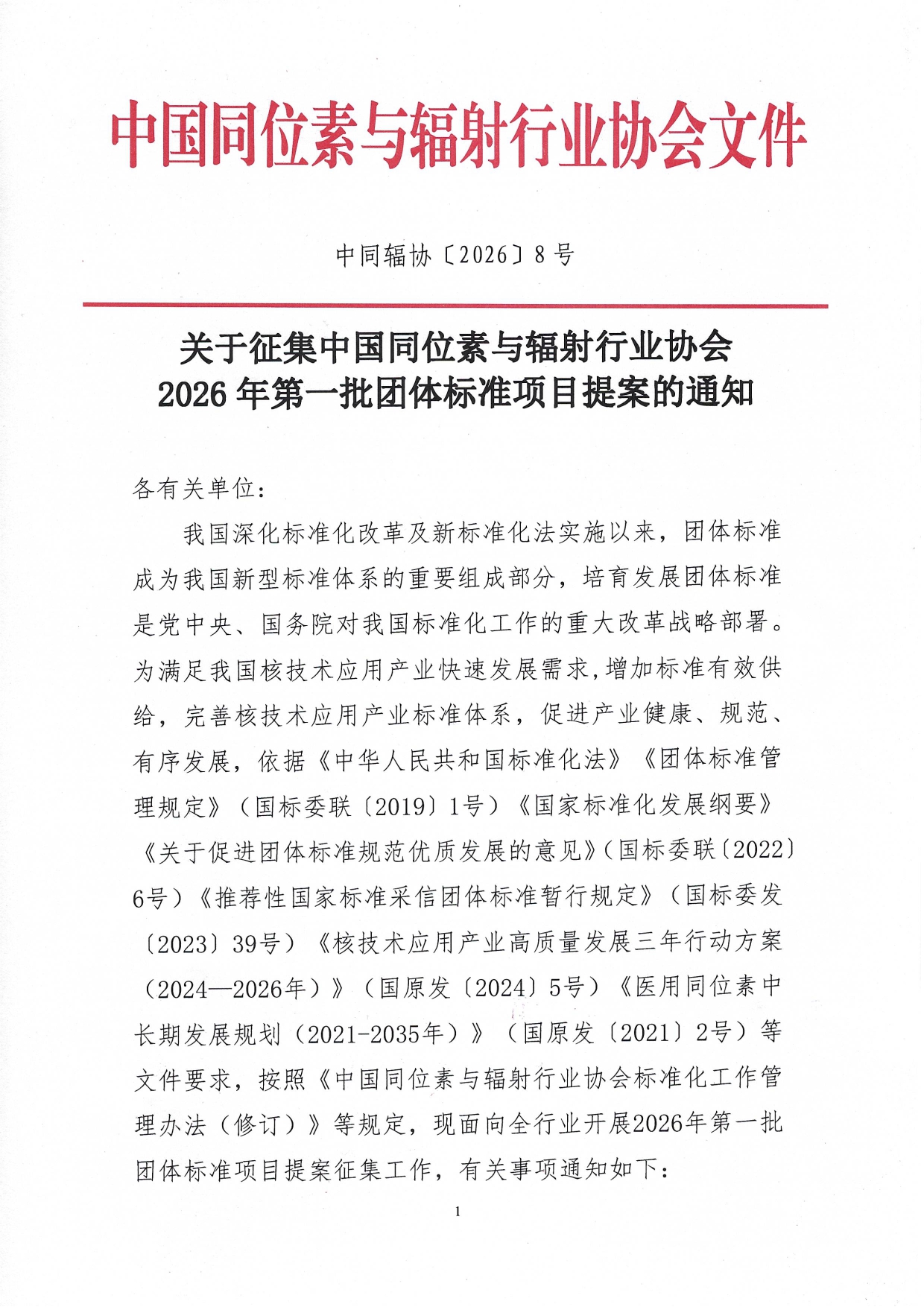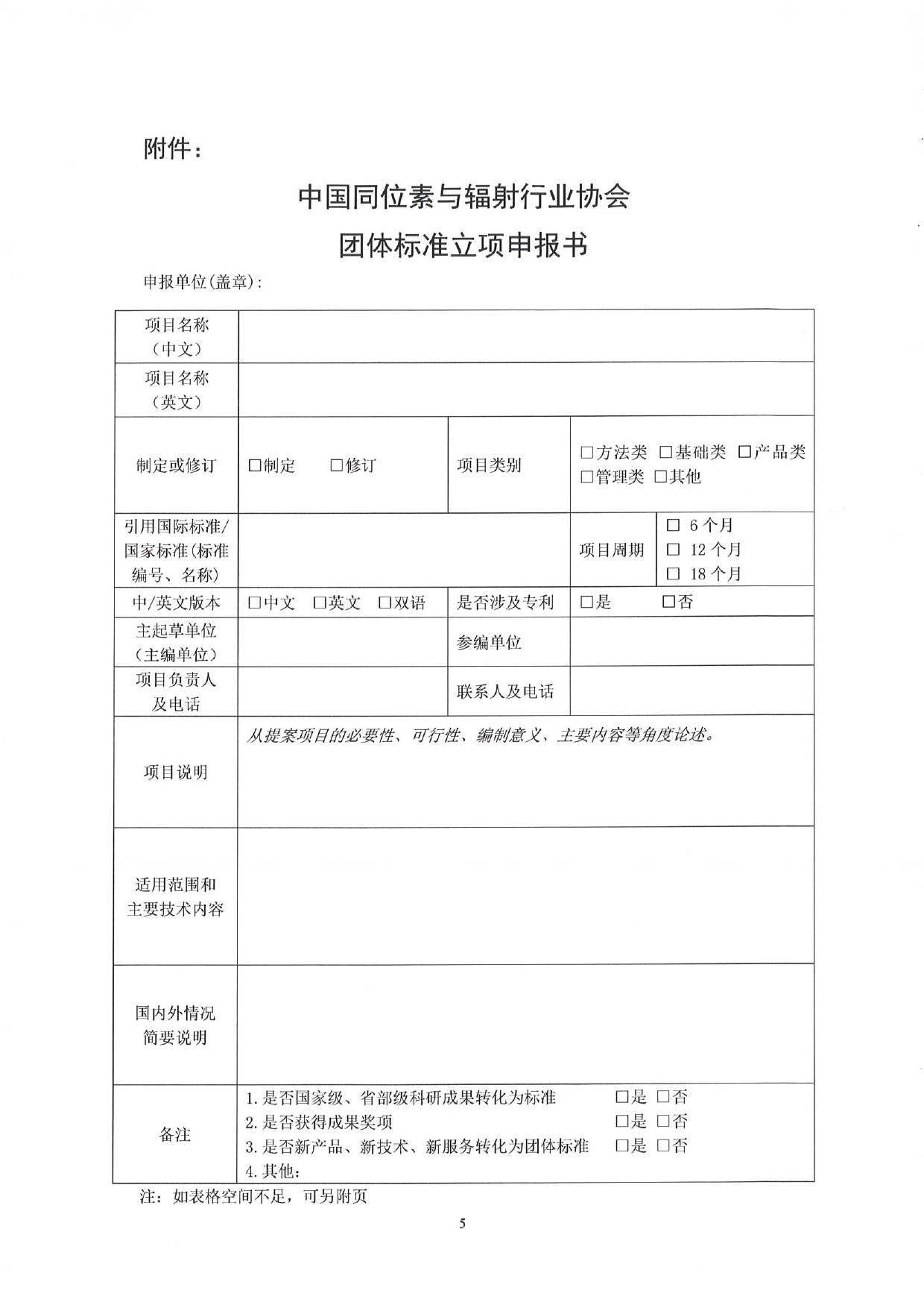 电子版通知和附件下载:附件:中国同位素与辐射行业协会团体标准立项申报书.rar