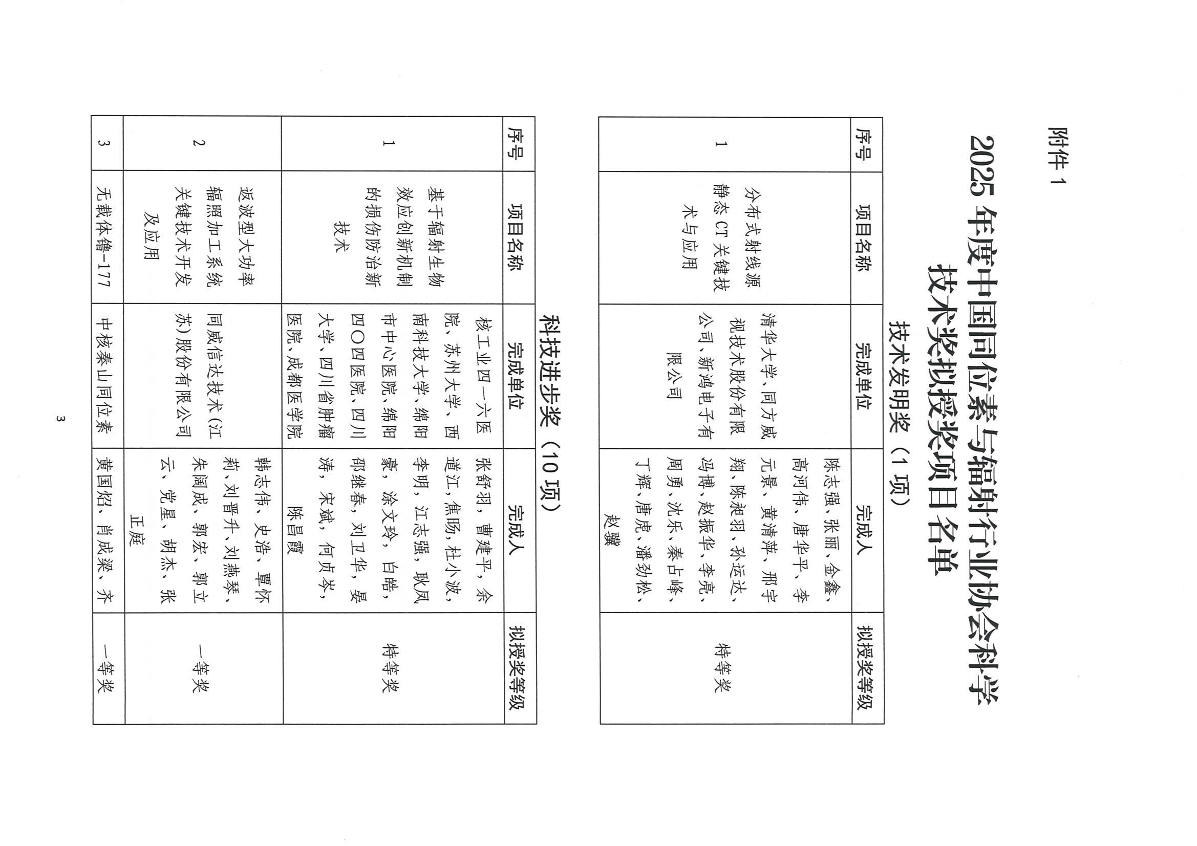 电子版通知及附件下载:中同辐协〔2026〕28号 2025年度中国同位素与辐射行业协会科学技术奖拟授奖项目公示.PDF