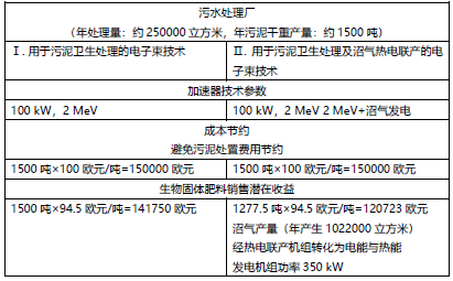 Chmielewski et al. (2021)通过表6开展了初步经济性研究,对比了仅采用电子束技术进行污泥无害化处理,与采用电子束技术实现沼气联产及污泥无害化处理的两种方案。