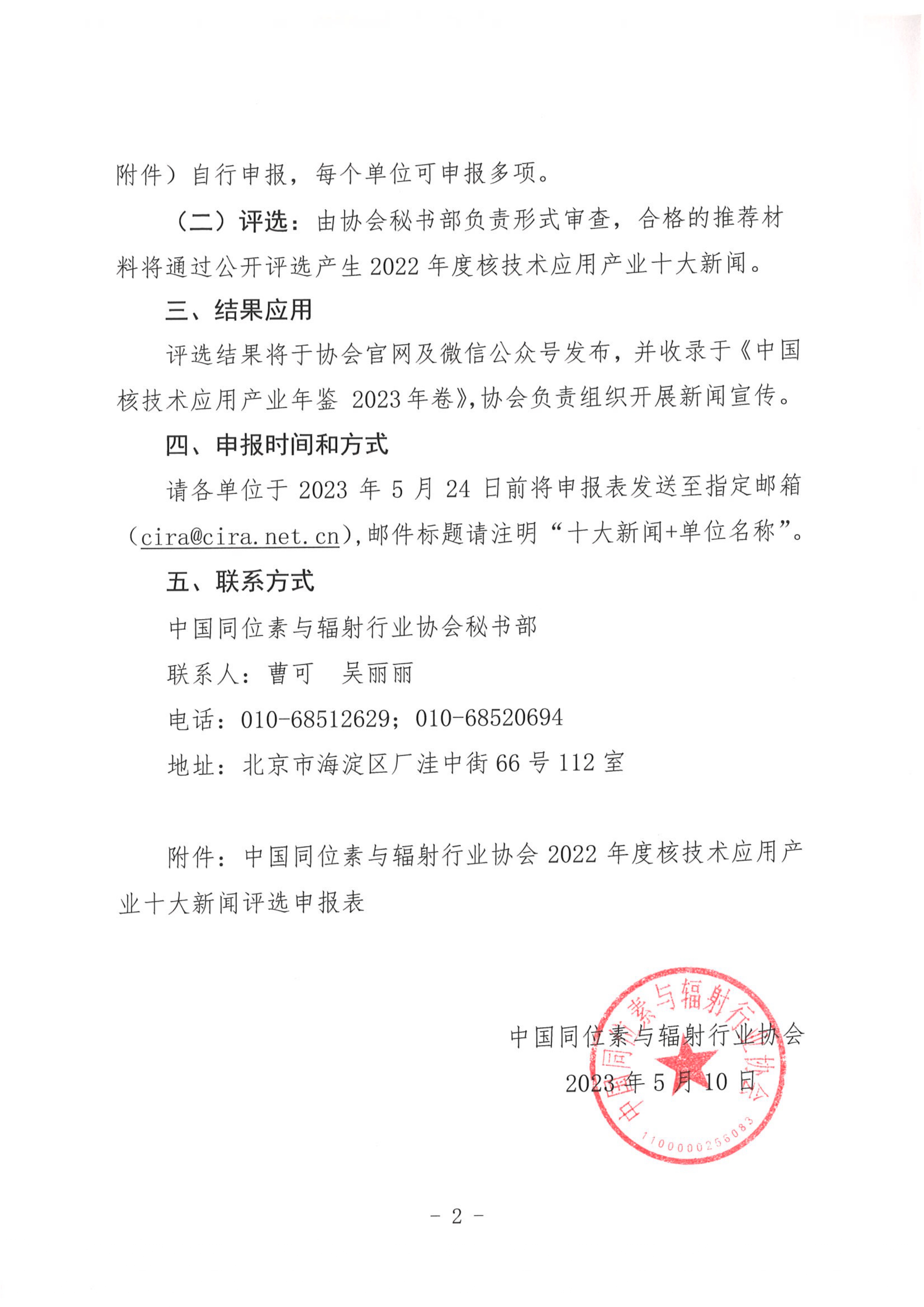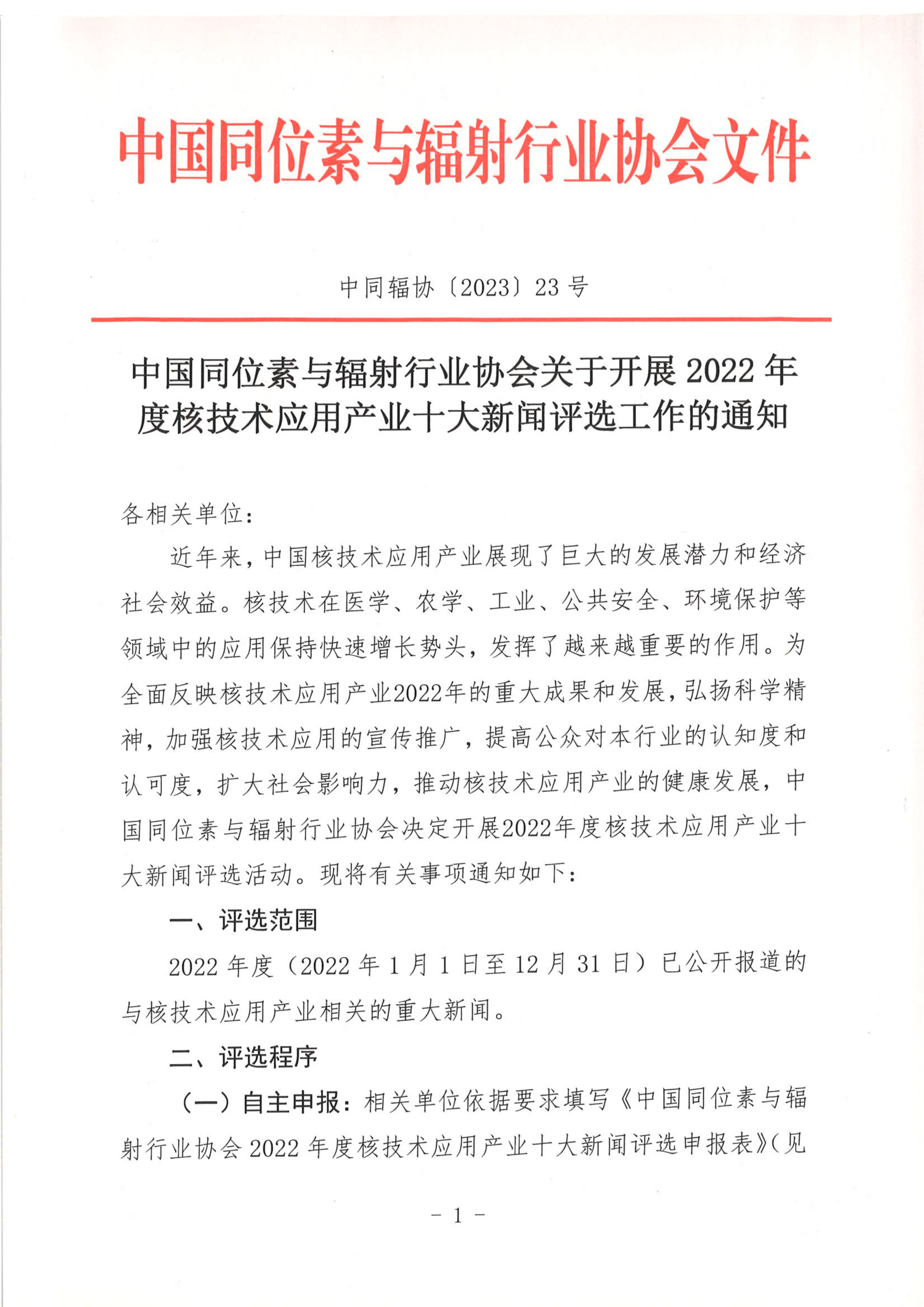附件:中国同位素与辐射行业协会2022年度核技术应用产业十大新闻评选申报表.rar