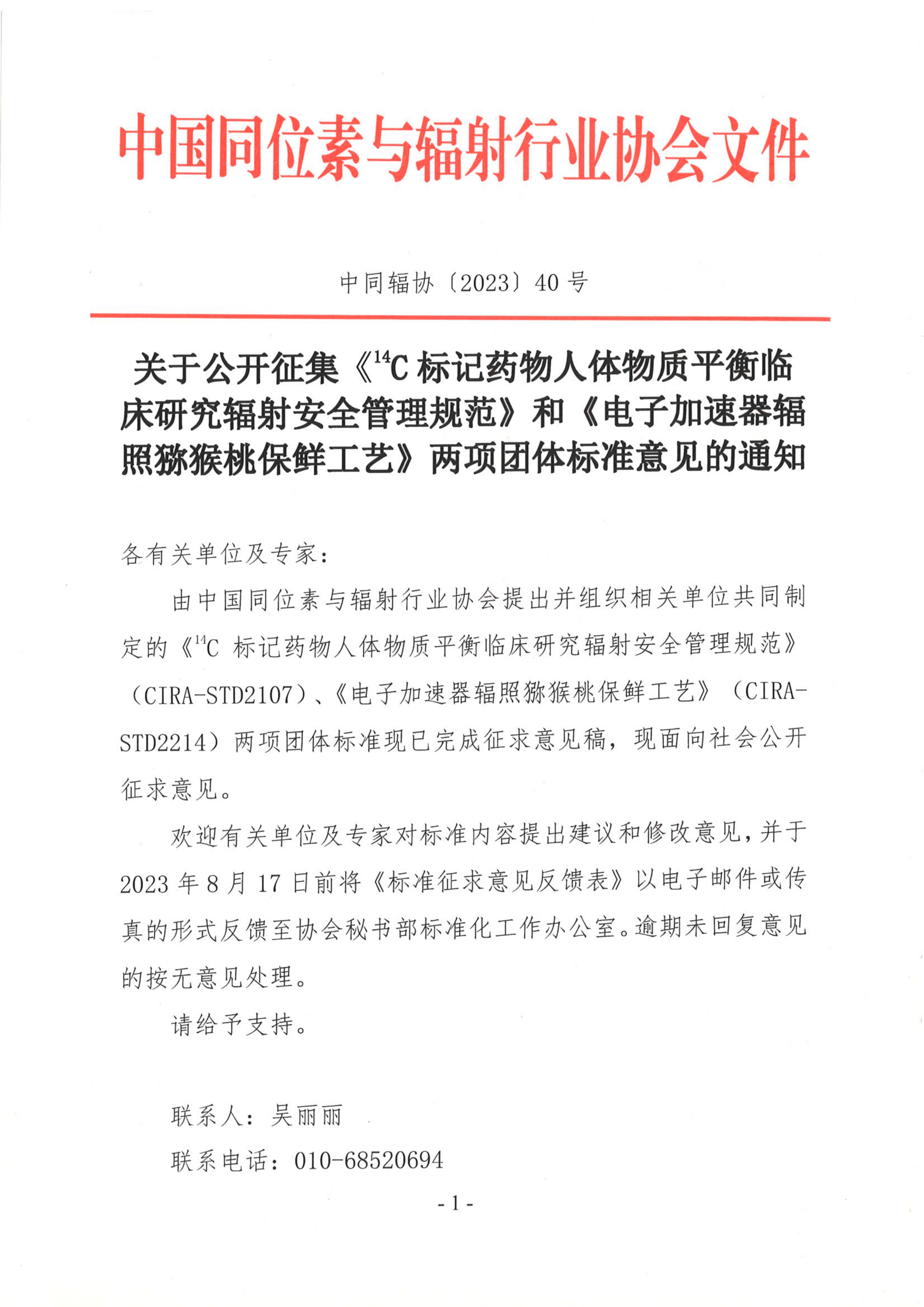 附件1.《14C标记药物人体物质平衡临床研究辐射安全管理规范》团体标准征求意见稿、编制说明及征求意见反馈表.zip